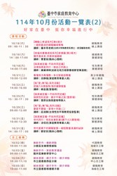 臺中市家庭教育中心114年10月份活動一覽表 中秋上架!