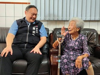 盧市長表示,替阿公身體健康感到開心,並以他為榮。盧市長也告訴阿公,市府除了今天會送給他重陽敬老禮金1萬元,未來每個月還會發放新台幣6,000元給百歲長輩,也祝福他繼續保持健康,並讚嘆阿公記憶力很好,非常厲害。
