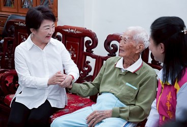 賴總統訪台中百歲人瑞 盧市長陪同話家常、致贈萬元敬老禮金