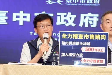 台中市首例疑似非洲豬瘟案例,台中市政府昨(22)日由市長盧秀燕二次召開緊急應變會議,今(23)日由副市長黃國榮再次召開記者會,針對中市府農業局、經濟發展局、教育局、衛生局、環境保護局5局處因應作為向民眾說明,以「嚴格稽查,有查必報」原則把關豬隻,降低傳染病散播,共同守護市民食安。