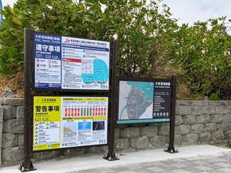 為打造安全無虞的親水環境,台中市政府觀光旅遊局全面更新設置大安濱海樂園、大甲松柏漁港北堤海域等兩大熱門水域活動景點安全警示告示牌,同時正式啟用「台中海域即時海象資訊網」,提醒民眾在進行水域遊憩活動時應注意的事項,有助於提醒遊客迅速了解現場風險資訊、提升自我保護能力,讓遊客都能安心享受台中的海洋魅力。