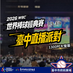 運動局進一步說明,為提前炒熱賽事氛圍,運動局宣布自2月2日起連續四週推出「中市府前WBC直播抽好禮!週週抽、現場領 一起為中華隊加油!」活動,前三週將抽出限量「2026台日棒球國際交流賽」門票,每週一於運動局官方粉絲專頁開放留言應援,每週五公開抽獎,邀請球迷一同為中華隊集氣加油。