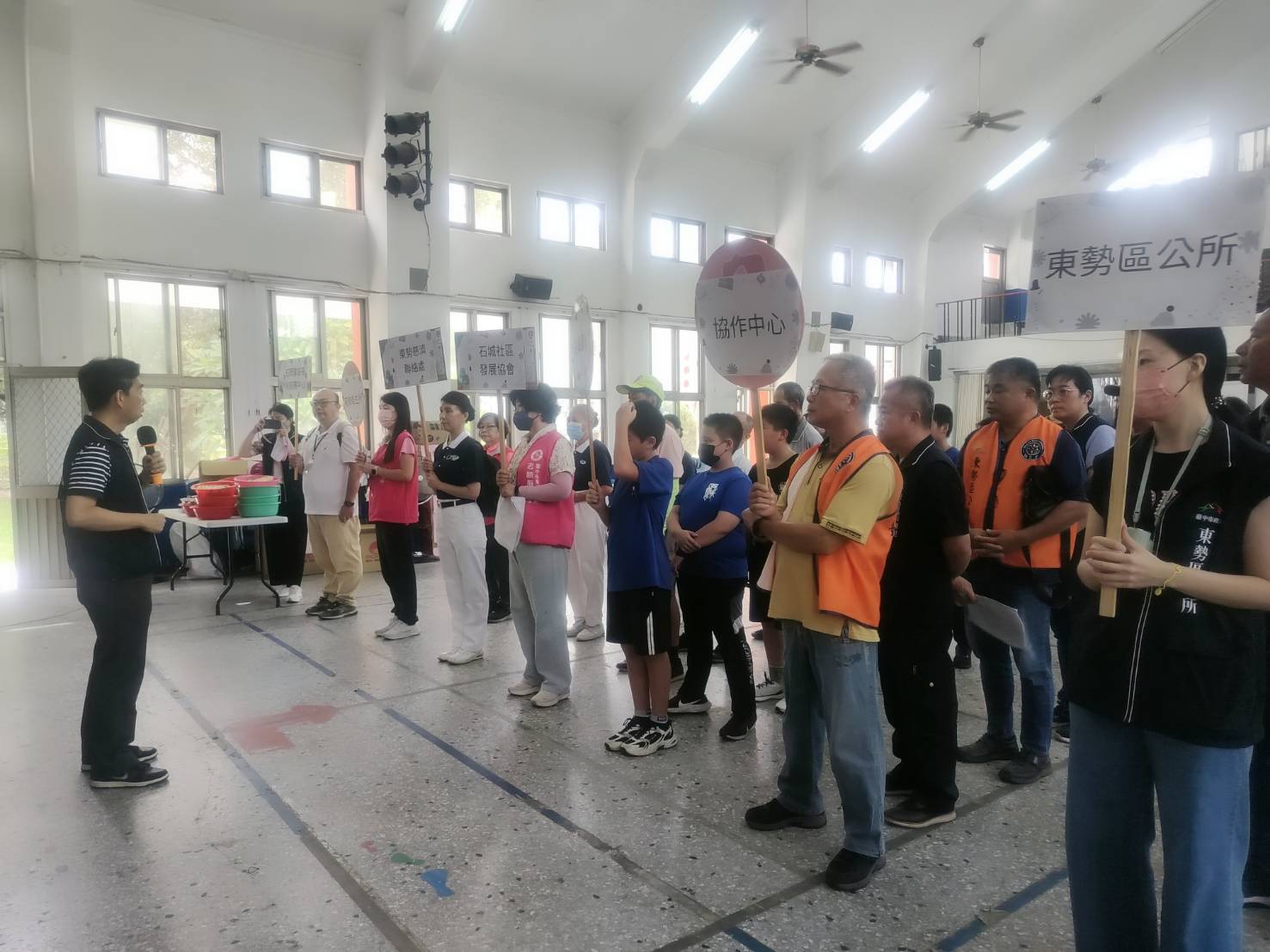 114年9月19日國家防災日,本所聯合石城國小師生、東勢區防災協作中心、茂興里辦公處、泰興里辦公處、石城社區發展協會、慈濟東勢區聯絡處、石岡區家庭福利中心、東勢區衛生所等單位,共計約90人進行震災避難演練,本次演練由林豪爵主任秘書代表翁培真區長全場統籌指揮。