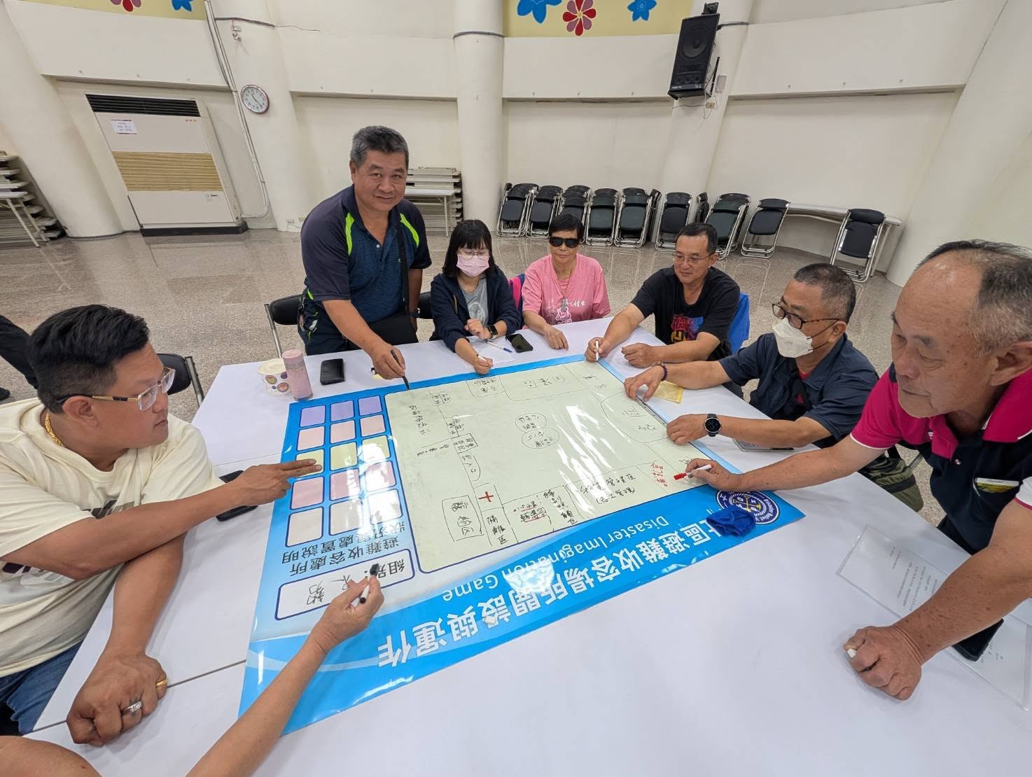 來自東勢、石岡、新社、后里、和平等五區公所防災協作中心成員,共同研議相關防災協作中心運作、避難收容開設營運管理、防災學習遊戲工作坊、災後物資整備與發放等議題。