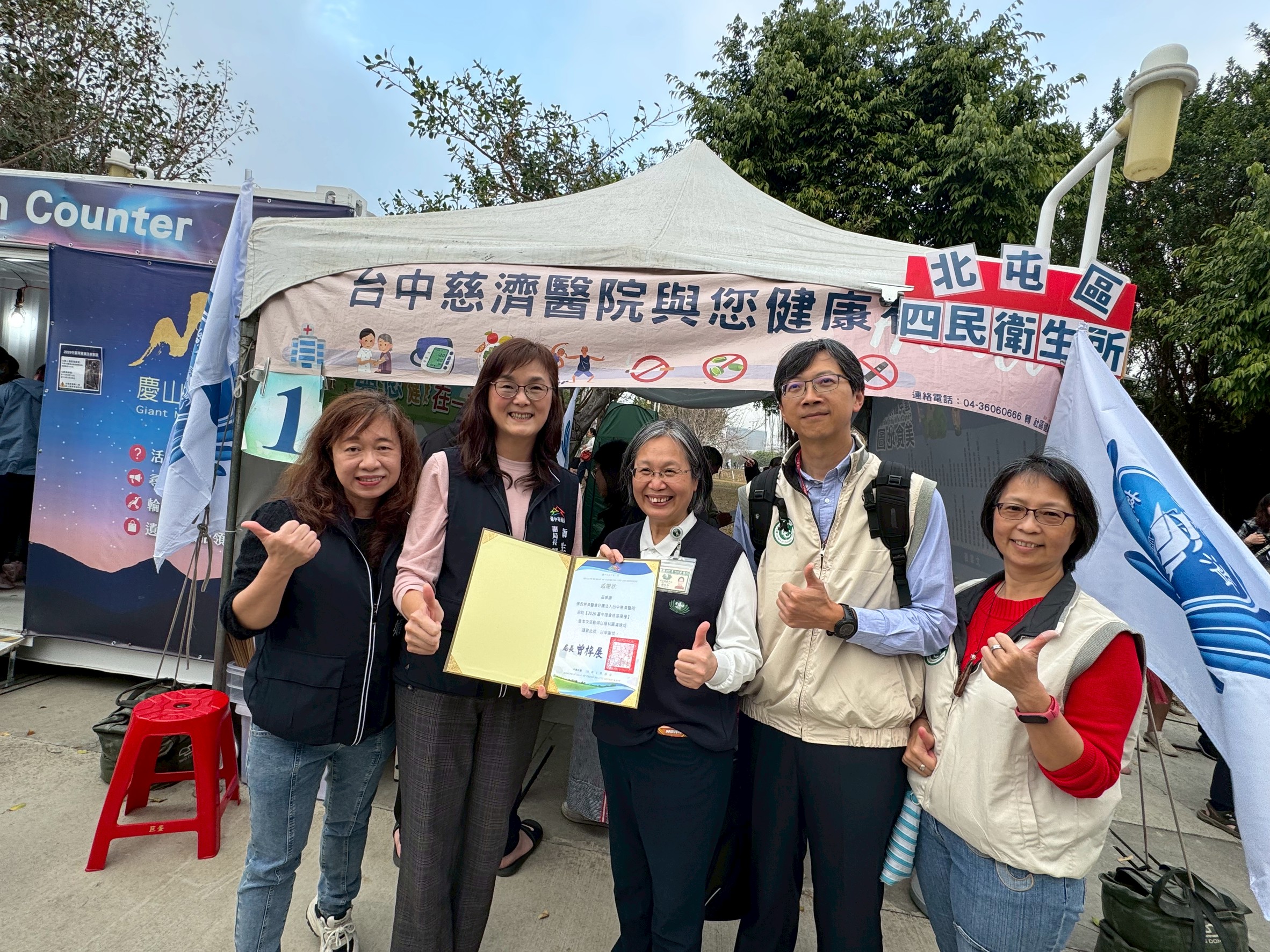 此外,昨(23)日衛生局副局長邱惠慈偕同衛生福利部疾病管制署中區管制中心人員前往接種站,慰勉第一線醫護與工作同仁,致贈感謝狀及飲品表達謝意。衛生局表示,正因醫護團隊專業投入,才能將健康服務延伸至燈會現場,讓市民在歡樂氛圍中也能安心完成接種,共同守護社區健康。